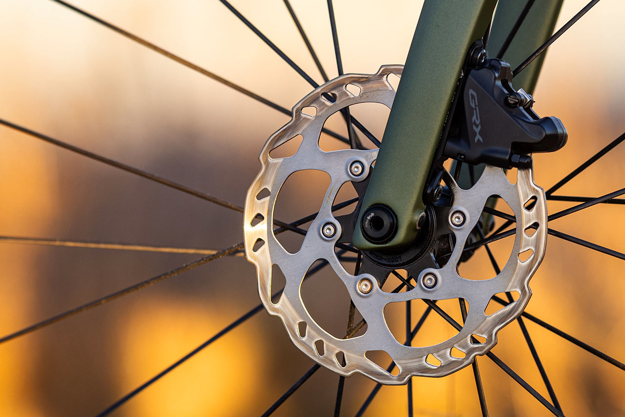 Kotouče jsou zde základní Shimano, vpředu o průměru 160 mm, vzadu pouze 140 mm. Obutí tomuto modelu dodává německé Schwalbe, konkrétně model G-One Allround v rozměru 700x40c.