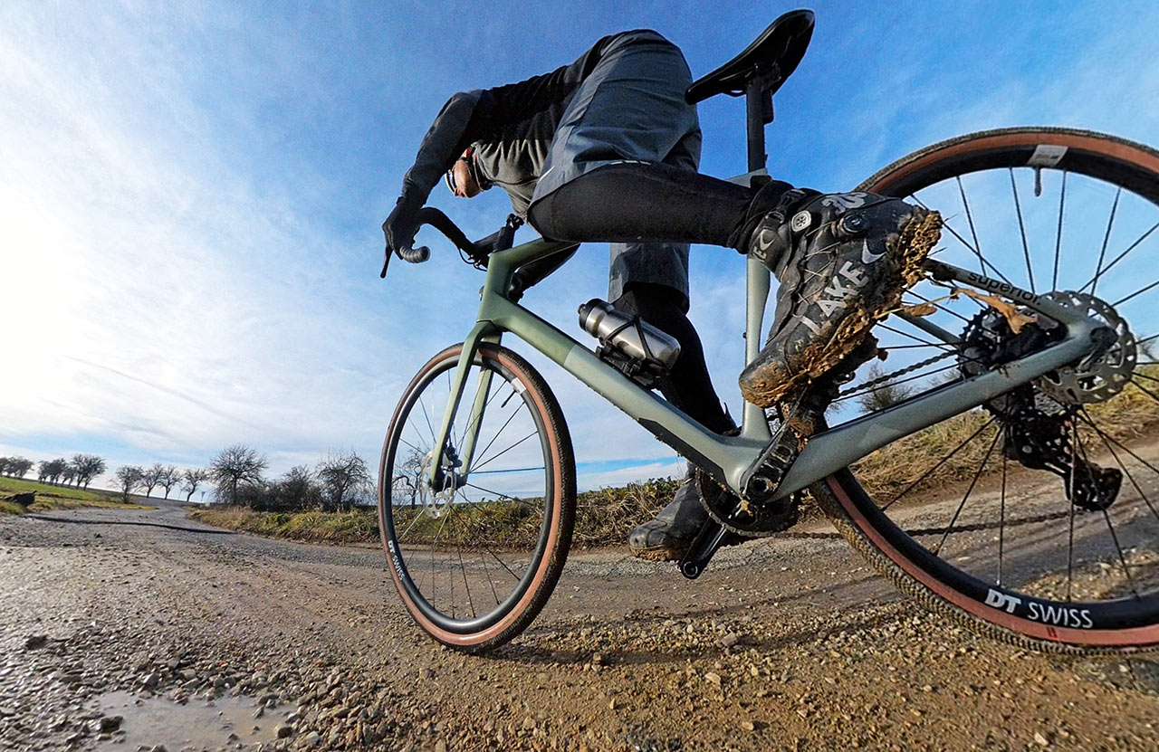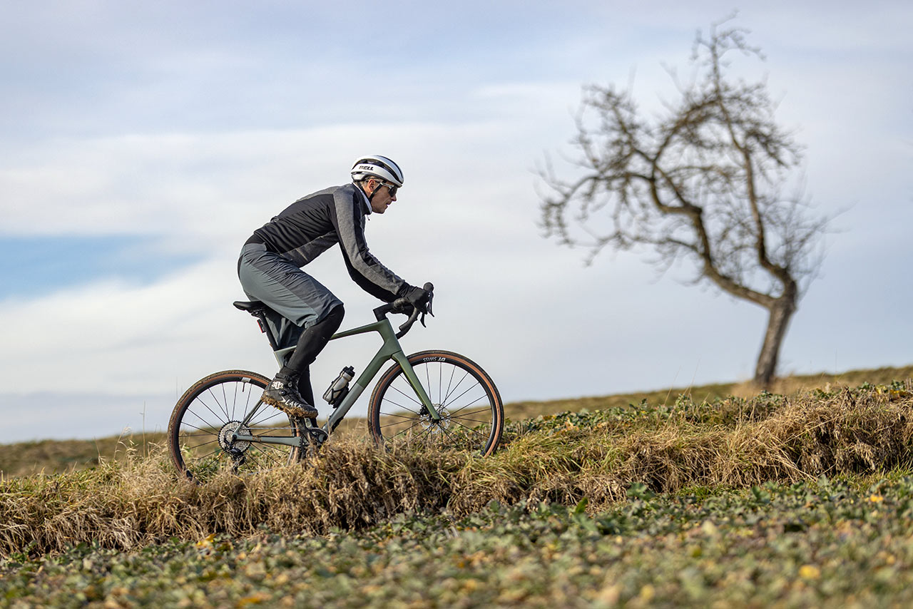 Jinak, když už jsem u těch kol, pláště Schwalbe zvolil Superior poměrně konzervativně, vzhledem k tomu, co by si mohl dovolit, kdyby se chtěl trošku víc odvázat. G-One Allround, jak už název napovídá, je univerzál, který vás na silnici nebude příliš brzdit, ale v terénu, zejména v podzimně-jarním období, budete muset být neustále ve střehu, aby vás mazlavé bláto nebo nacucaná louka nevytrestaly. Osobně bych se v tomto případě přikláněl k o něco drsnějším vzorkům plášťů, protože kdo chce drtit více silnice, sáhne po dvoupřevodníkových GF specifikacích, kde dostane ideální pláště na silničku. Tady bych se nebál zariskovat klidně s nějakými trošku víc ošpuntovanými pětačtyřicítkami, ať to má trochu říz.