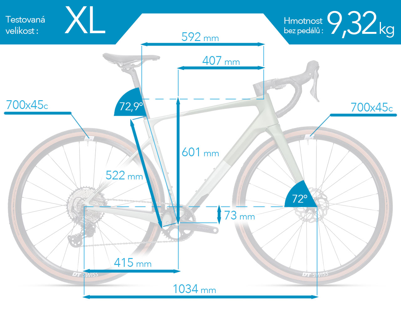 Designově jde o ukázku toho, jak by měl podle mě dnešní moderně sportovně laděný gravel vypadat – a to především z pohledu schopnosti kombinovat rychlost, univerzálnost a jízdní komfort.