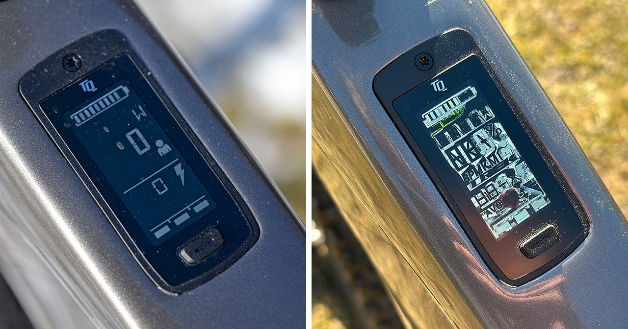 Také ovládámí pohonu je naprosto minimalistické a probíhá prostřednictvím kompaktního dvoutlačítkového ovladače, umístěného u levé rukojeti, který tak nijak nekoliduje s páčkou teleskopky. Aktuální nastavení a nějaké ty systémové jízdní hodnoty pak můžete během jízdy snadno sledovat na LCD displeji integrovaném do horní rámové trubky, jen si dávejte pozor, abyste displej nenechávali příliš dlouho na přímém slunci a příliš na něj ani nesahali, protože nejenom, že není dotykový, ale dotyky mu mohou způsobit krátkodobé trauma v podobě "rozsypaného čaje". Ale nebojte, po restartu a chvilce klidu v chládku zase zpátky najede jak má :-). Jinak malý ergonomický faul bych viděl v tom, že z řídítek můžete ovladačem měnit jen úroveň dopomoci, ale přepínat různé obrazovky na displeji musíte manuálně tlačítkem pod displejem, což za jízdy vyžaduje cvik.