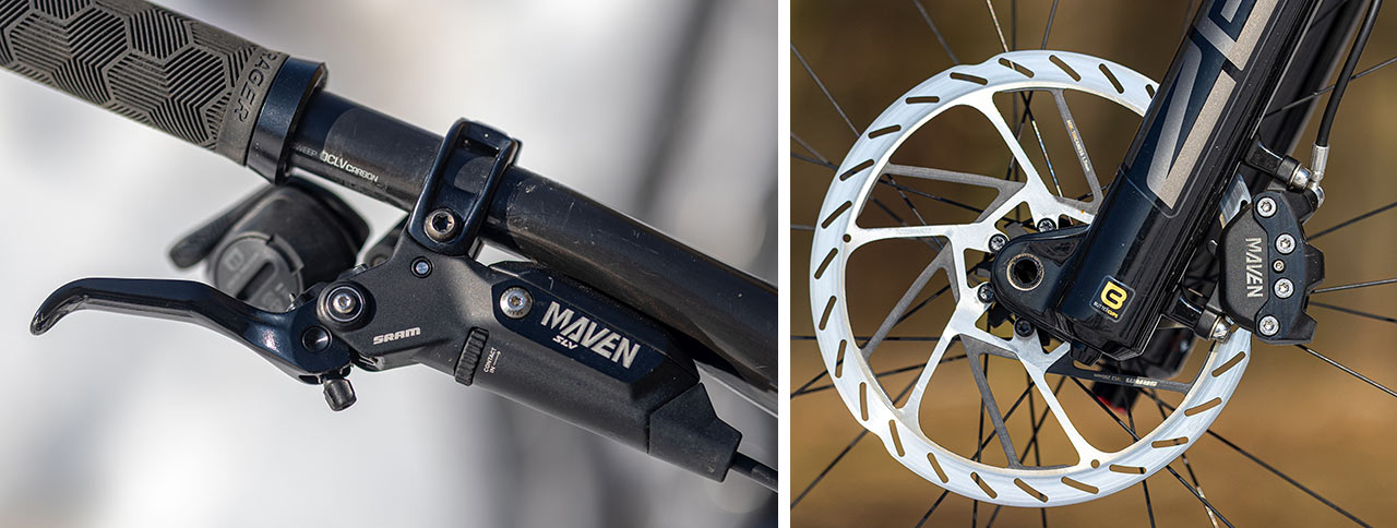 Koncern Sram pak dodává také kompletní hydraulické kotoučové brzdy Maven Silver ve čtyřpístkovém provedení, s brzdovými kotouči o průměru 200 mm na obou kolech.