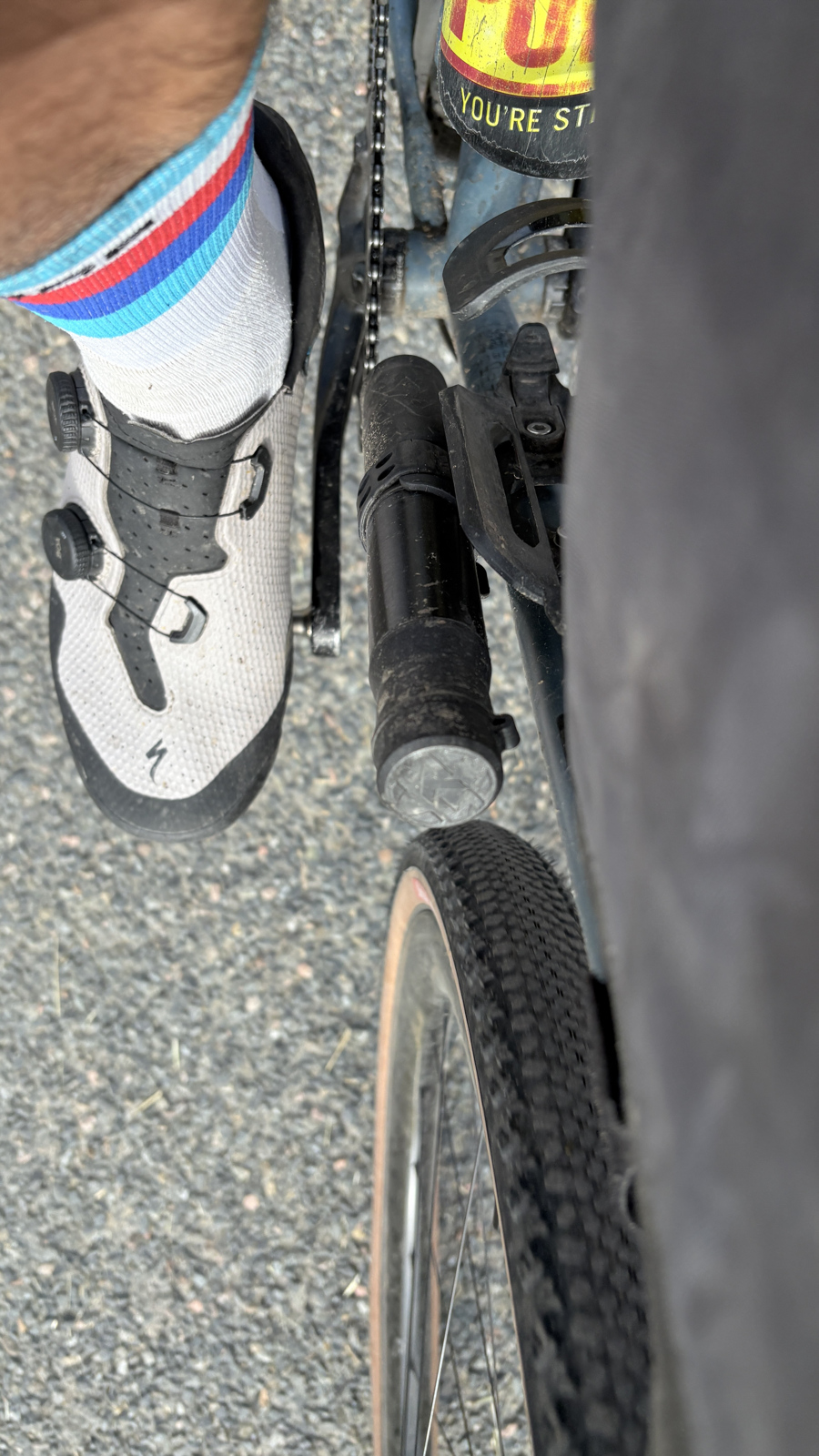 Tlak většinou volím dle typu vyjížďky. Tentokrát jsem se nechal ovlivnit italskou kalkulačkou doporučených tlaků přímo od Vittorie – najdete ji zde. Na mých 80 kg to vyšlo na 1,87 baru vepředu a 1,97 baru vzadu. Což vlastně odpovídá i tlakům, které rád vozím. Takže grazie mille, Vittoria! Víceméně se pohybuji v rozmezí 2,1 – 2,3 baru, pokud převyšuje silnice, a 1,8 – 2,0, pokud je více šotoliny a gravelu.