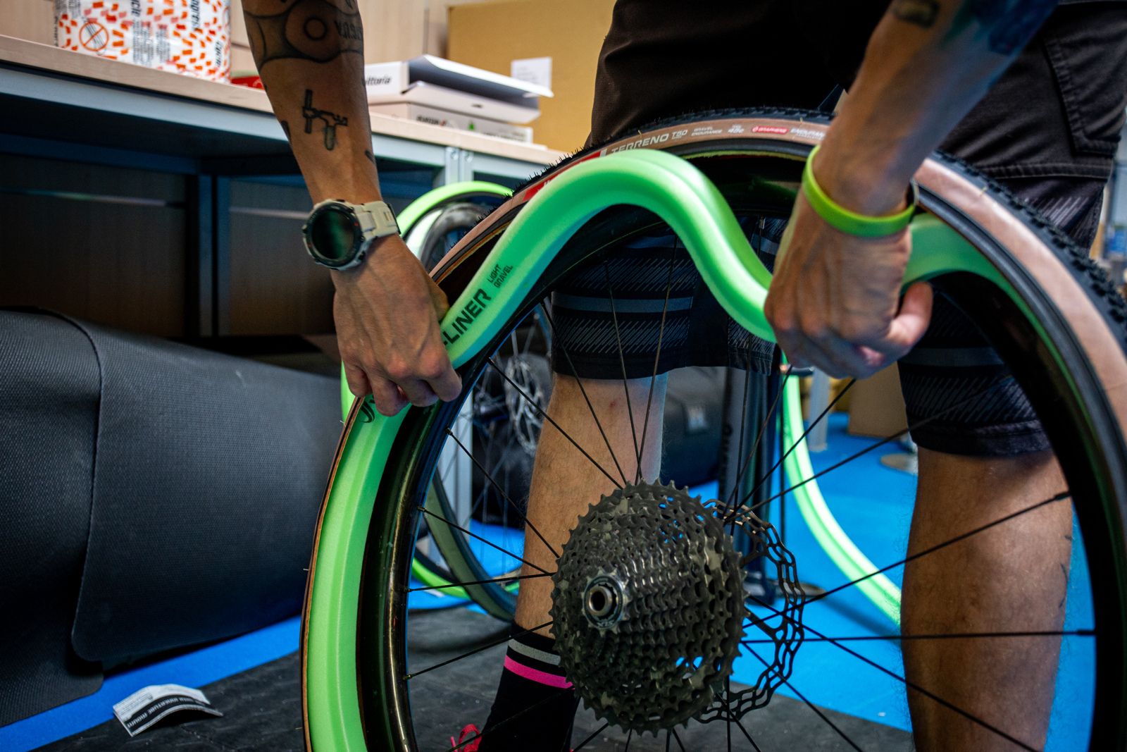 Nakonec jsme s mechanikem Michalem Hovorkou osadili modelem Vittoria Air-Liner Light (40 g) jen zadní kolo, protože nahození plášťů s vložkou není zrovna jednoduchá disciplína. V plášti s insertem už není příliš prostoru ani pro samotný vzduch :-) Na pohmat má určitě jednu atmosféru tlaku! Každopádně vložka plní svou funkci – při defektu by se v pohodě dalo dojet do cíle. Tedy čistě teoreticky, tohle jsem opravdu nezkoušel. Nicméně jízda s insertem nijak neovlivňuje samotnou jízdu ani tlumicí schopnosti pláště, i přestože jsem se toho malinko obával při prvním pohmatu, kdy byla vložka doslova narvaná.