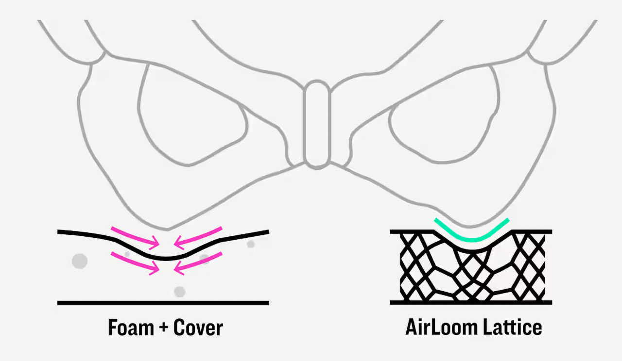 Technologie sedel Trek AirLoom s mřížkou nabízí cílenou oporu a pružnou odezvu přesně tam, kde ji potřebujete. Díky 3D tištěným podpůrným zónám tlumí AirLoom nárazy na sedací kosti a pruží pod měkkými tkáněmi, což zajišťuje dlouhodobé pohodlí i při těch nejnáročnějších jízdách. Na rozdíl od pěnových sedel s vypnutým vnějším potahem, který způsobuje tření a tlak, otevřená mřížková konstrukce sedla AirLoom se pohybuje spolu s tělem, čímž snižuje otlaky a zaručuje příjemnou jízdu.