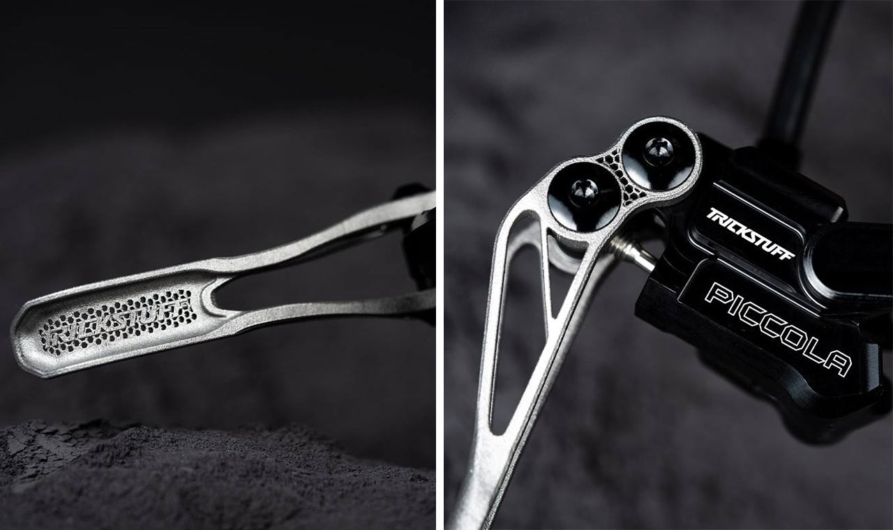 Německý výrobce brzd Trickstuff představil novou verzi svých špičkových čtyřpístkových brzd Piccola HD, nyní vybavenou inovativními 3D-tištěnými titanovými pákami. Tato novinka, vyvinutá ve spolupráci s firmou Trumpf, byla poprvé představena na veletrhu Eurobike před dvěma roky a nyní je konečně dostupná i pro veřejnost.