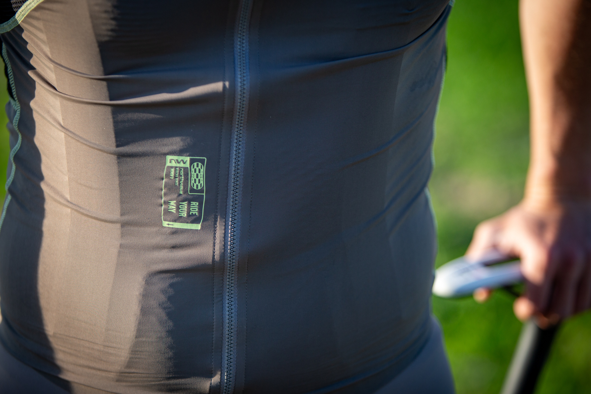 Lehoučké a prodyšné jsou i rukávy, a navíc tu máme superprodyšné odvětrávací mesh panely. Tady ale Northwave zaválel, protože se mu povedlo vytvořit dres, který přesně doléhá na ramena, nikde nevlaje, ale je maximálně prodyšný. Na druhou stranu břišní část je už z trochu robustnějšího materiálu, což ale činí dres univerzálnějším. V některých letních dresech máte pocit, jako byste jeli svlečeni do půl těla, a je opravdu potřeba, aby teplota vystoupala nad 25 °C, jinak vás bude jízda ve stínu studit. Tento dres je příjemný i za jízdy při „pokojové“ teplotě a v horku se v něm navíc nespálíte.