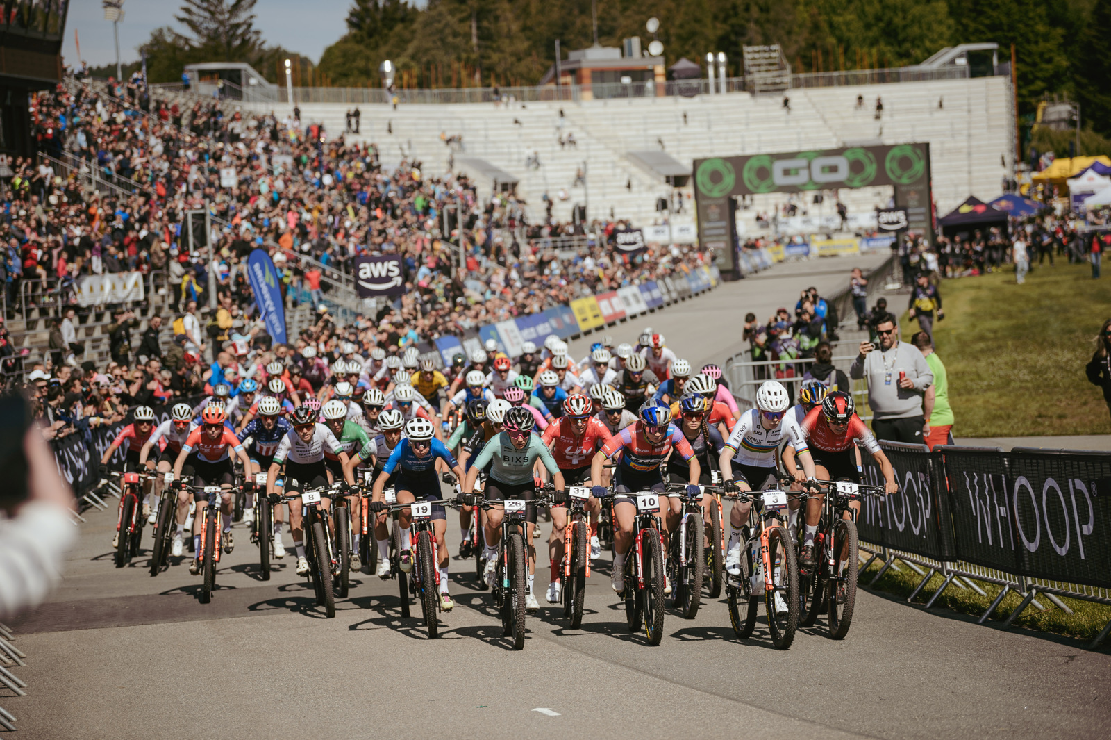 Již v 10:00 se na start postavila první elitní kategorie, a to ženy. Jako poslední do první řady šla na start vítězka sobotního short tracku Puck Pieterse (NED, Alpecin - Deceuninck). Mistryně světa patřila mezi největší favoritky závodu, ale ve 3. okruhu měla defekt zadního kola, propadla se o několik pozic a nakonec to dotáhla na 13. místo.