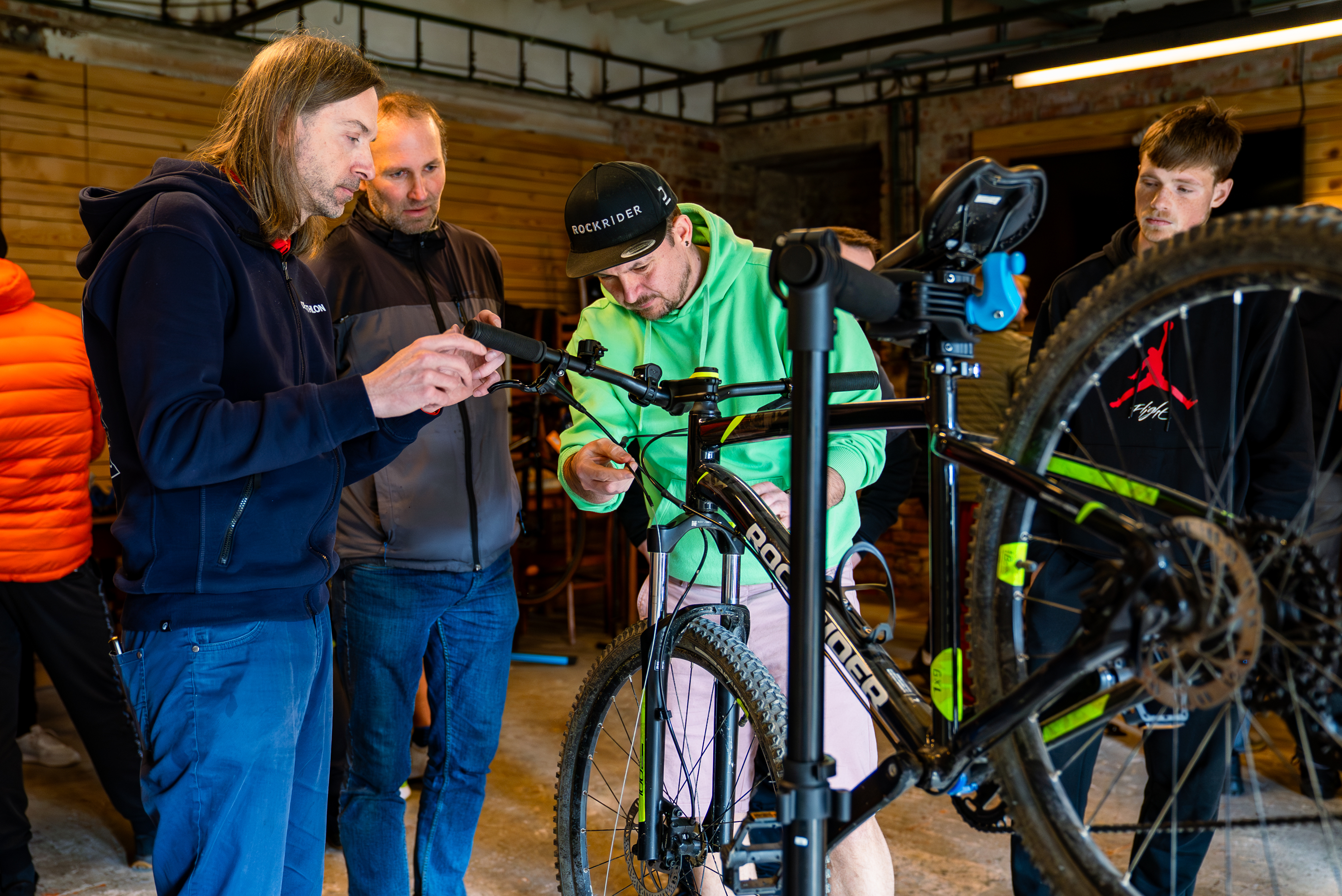3. Interní expertní školení. V prodejnách Decathlonu pracují technici, kteří absolvovali nejen odborné školení u našich partnerů, ale také interní školení ve vývojovém centru značek Rockrider a Van Rysel. Své zkušenosti navíc předávají dál a školí kolegy v servisech po celé republice.