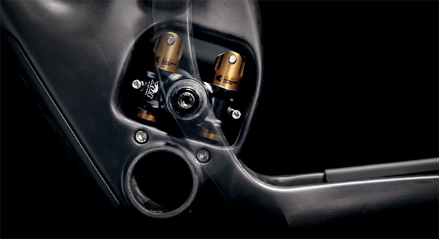 Výsledkem je patentovaná technologie Switch Infinity, jejíž hlavní novinkou je kluzný prvek založený na dvojici malých utěsněných pístků pevně uchycených uvnitř "klece" karbonového rámu, hned nad středem. Dlouhodobá spolupráce Yeti s Foxem, která se odehrává nejen na poli konstrukčním, ale také v rámci továrního závodního týmu, tak dostává nový rozměr. Zkušenosti firmy Fox na poli tlumičů, zejména pak v utěsnění jejich pístnic, konstrukci gufer a dalších prvků zajišťujících u tlumičů hladký chod, využilo Yeti při návrhu svého nového odpružení. Dvojice pístků v tomto případě neukrývá žádné komperesní komory ani tlumící elementy, ale má jedinou funkci - zajistit spolehlivý, sametový chod spodního čepu zadní stavby zhruba v rozsahu jednoho až dvou centimetrů. Přesnou představu, jak to celé funguje, si uděláte z následujícího videa.