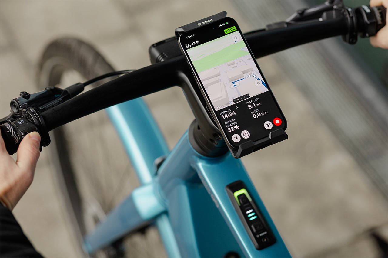 Držák SmartphoneGrip Vertical doplňuje novinky chytrého systému tak, aby odpovídaly digitálním funkcím. Promění telefon na displej elektrokola ve formátu na výšku. Během jízdy se telefon nabíjí indukčně nebo přes USB-C prostřednictvím akumulátoru eBike – takže lze spolehlivě používat i aplikace náročné na baterii. Na obrazovce jízdy v aplikaci eBike Flow se během jízdy zobrazují všechny důležité údaje – od rychlosti přes stav akumulátoru až po čas příjezdu.